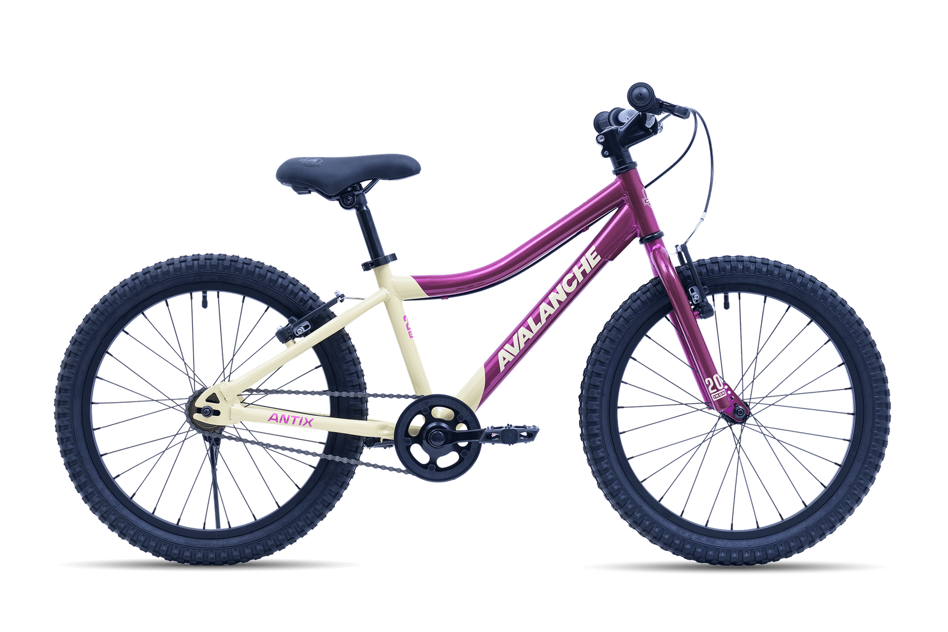 The Avalanche Antix 20″ is designed to spark a lifelong love of cycling. With its playful pink and custard colourway and confident, easy-to-ride design, this bike is as fun to look at as it is to ride. A durable steel frame and rigid fork ensure it can handle every little adventure, while the wide 20″ tyres provide grip and stability on neighbourhood rides, park paths or first trail explorations.